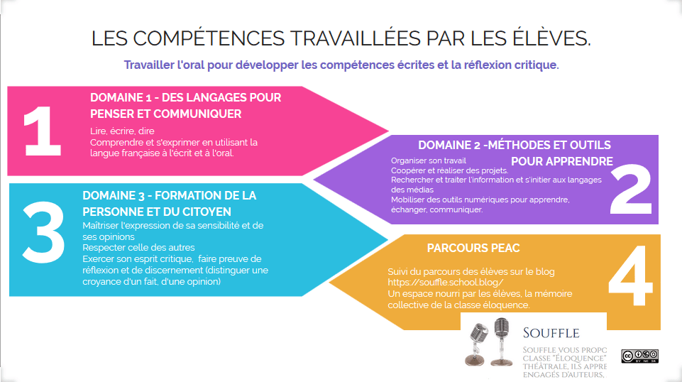 Le travail sur les compétences de l’oral dépasse le scolaire pour permettre à chaque élève d’avancer à sa mesure dans la vie : l’oral pour comprendre le monde, l’oral pour dire le monde, exercer son esprit critique, l’oral pour s’exprimer au monde dans un climat de confiance. C’est sur ses bases que le projet prend naissance.